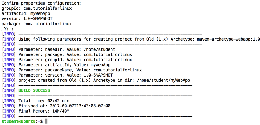 When you see the message: "Define value for property 'version' 1.0-SNAPSHOT: :", press Enter.