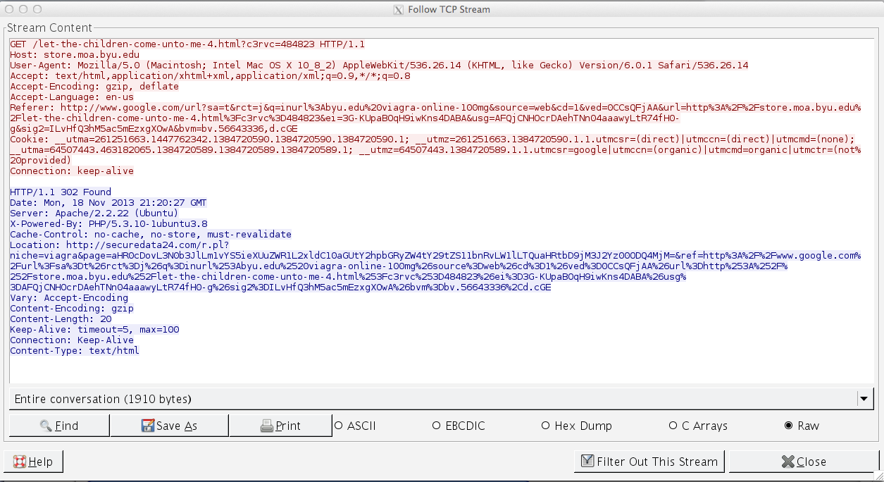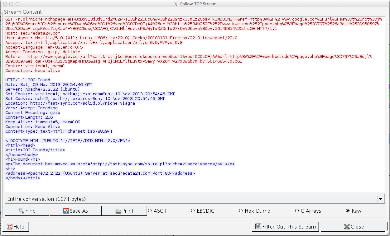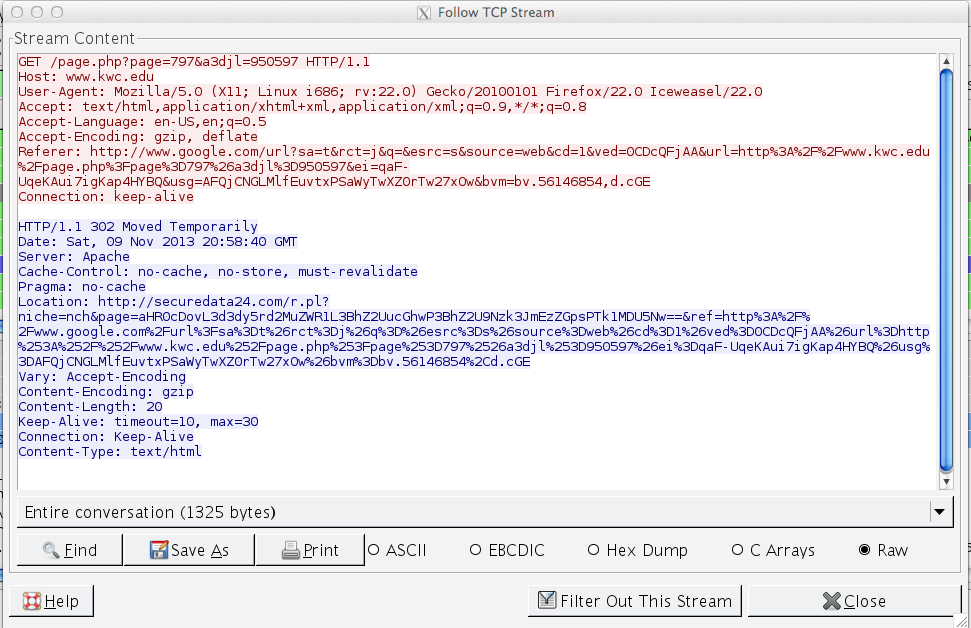 So I moved to a Kali Linux virtual machine, turned off Avast, and ran Wireshark while loading the page from the Google hits to get the whole story.