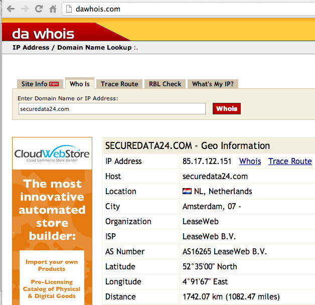 Here are some more links showing information about it. It's an 8-month-old domain in Amsterdam that does not seem to have been used to host any real website.