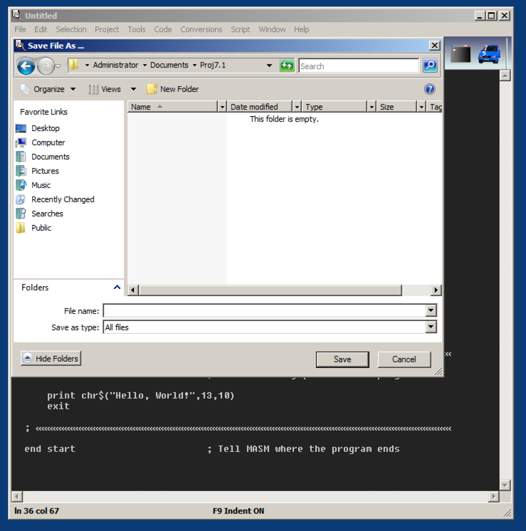 Name the new folder Proj7.1 and press Enter to open the new folder, as shown below.