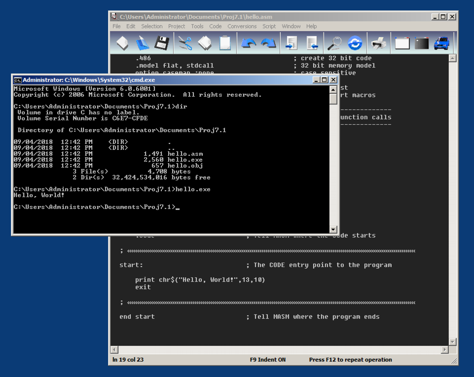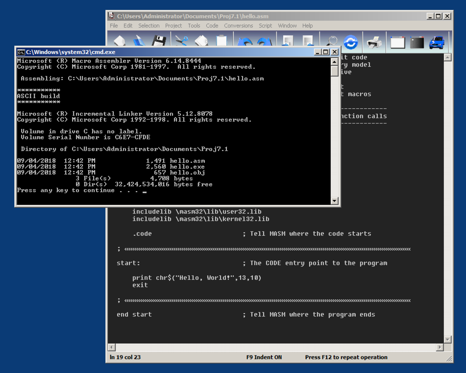From the MASM32 menu bar, click File, "Cmd Prompt".