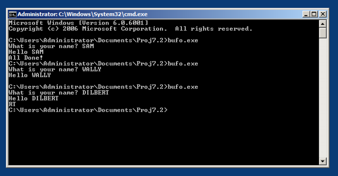Try longer names, such as WALLY and DILBERT. The "All Done!" message is replaced by characters from the end of the name, as shown above.