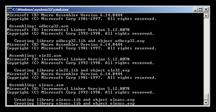 A Command Prompt box opens, and many messages scroll by, as shown below.