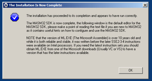 You see "The Installatio Is Now Complete", as shown below. Click OK.
