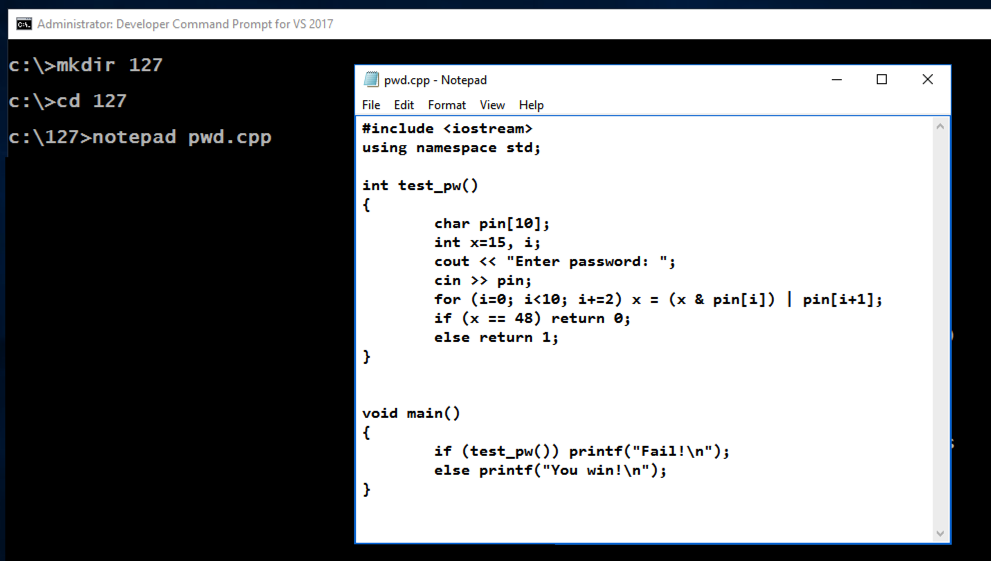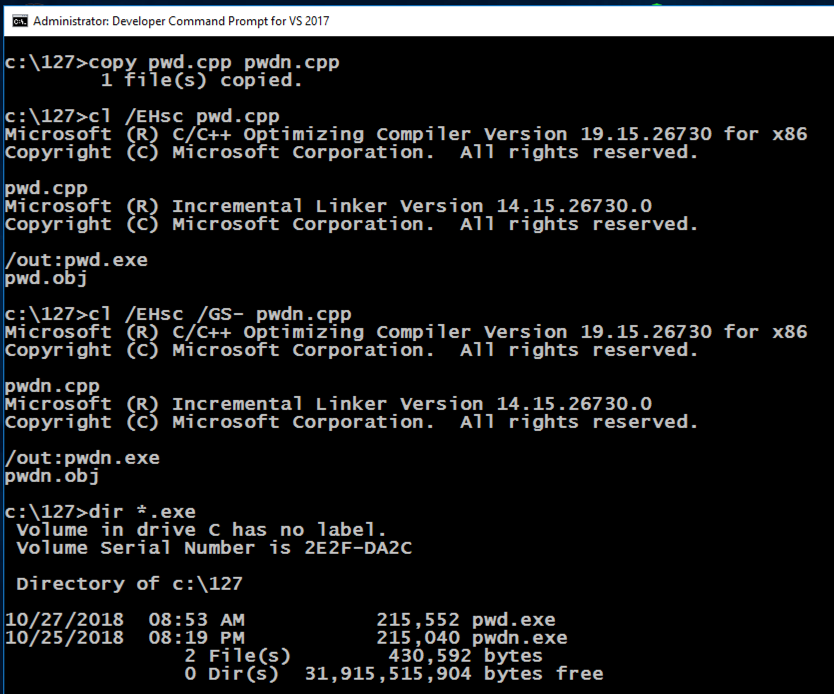 If you already have Visual C++ Build Tools installed, click the Start button, scroll to the V secton, expand "Visual Studion 2017", and click "Developer Command Prompt for VS 2017", as shown below.Then skip to the "Making the pwd Program in C++" section, below on this page.