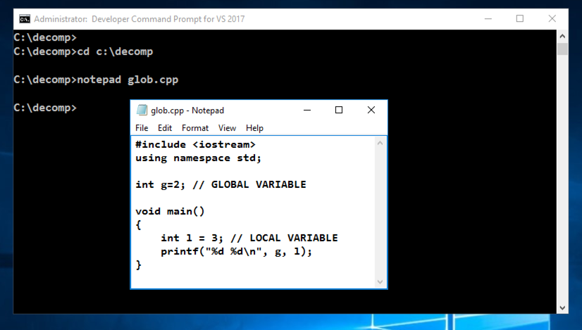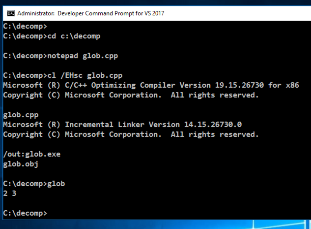 In the "Select file" box, navigate to C:\decomp and double-click glob.
