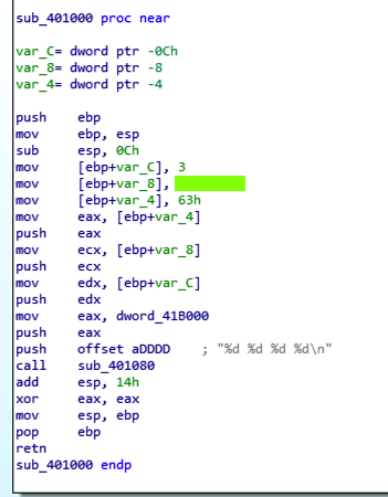 Download this file:Disassemble it in IDA Pro. Find the code shown below.