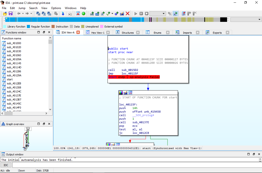 Double-click the address labelled "DATA XREF". The assembly code appears, as shown below.