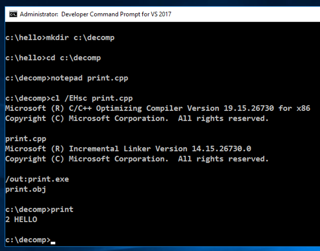 In the "Select file" box, navigate to C:\decomp and double-click print.