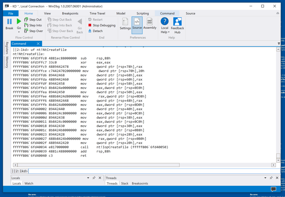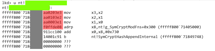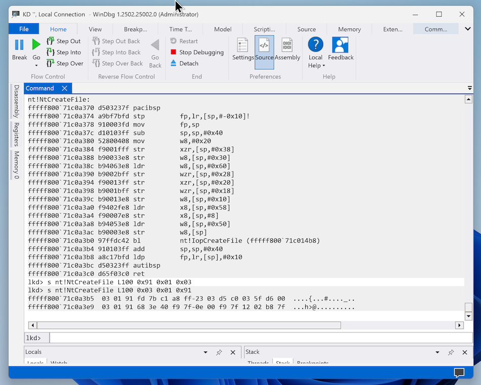 - Warning: bytes appear in reverse order in words in WinDbg on ARM64.