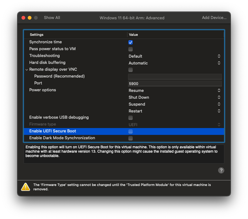 Shut down your virtual machine, go into its settings, and disable "UEFI Secure Boot", as shown below.