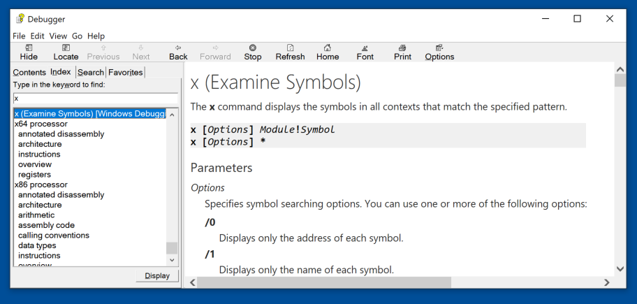 Double-click the first result: "x (Examine Symbols), as shown below.