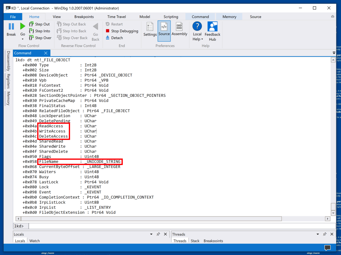 For a more complete explanation of the _FILE_OBJECT structure, see: FILE_OBJECT structure (wdm.h).