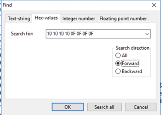 Data is visible, consisting of 0F and 10 bytes, as shown below.