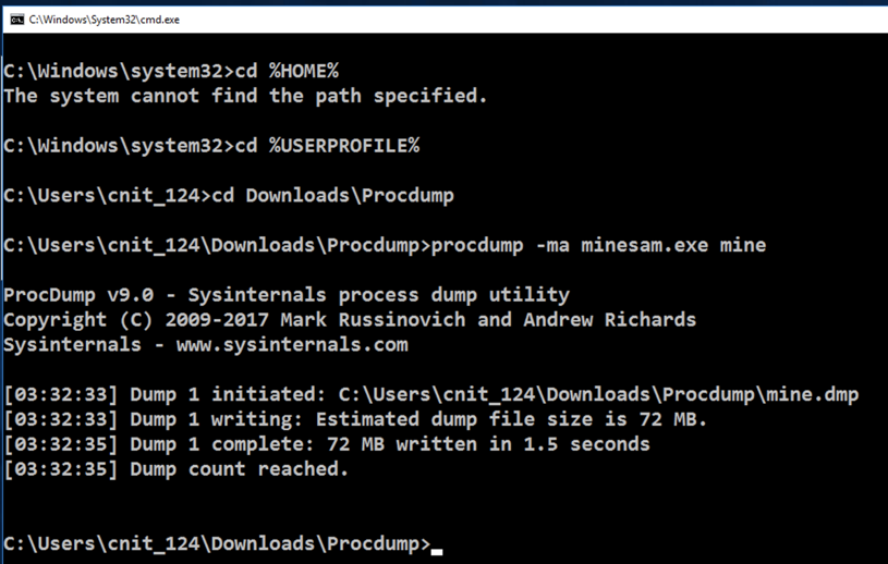 Navigate to your Downloads folder. Open the Procdump folder and double-click the mine.dmp file.