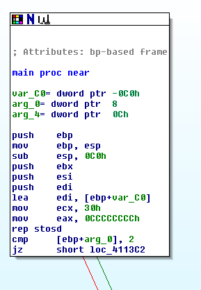 This compares some number to 2 with the cmp (Compare) operation, and jumps to a different module if it is 2, using the jz (Jump if Zero) operation.这将一些数字与cmp (比较)操作进行比较,如果它是2,则使用jz (如果为零)操作跳转到另一个模块。
