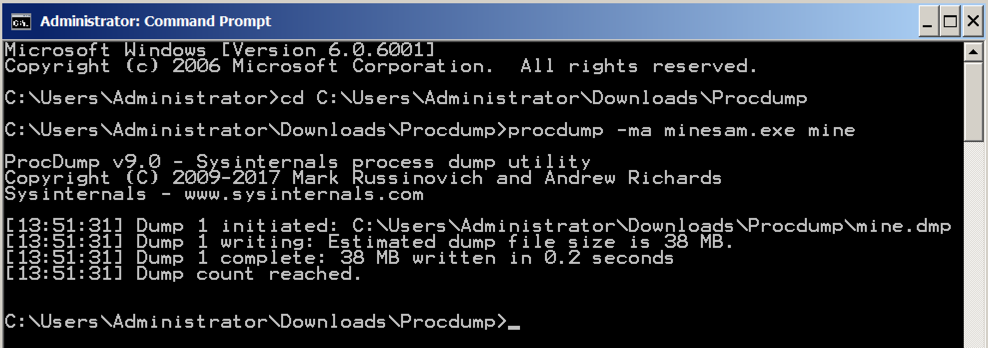procdump -ma minesam.exe mine