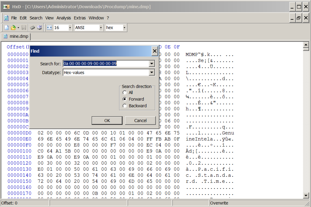 Navigate to your Downloads folder. Open the Procdump folder and double-click the mine.dmp file.