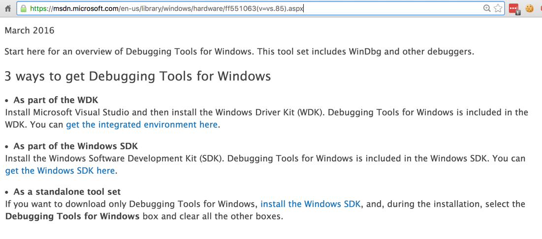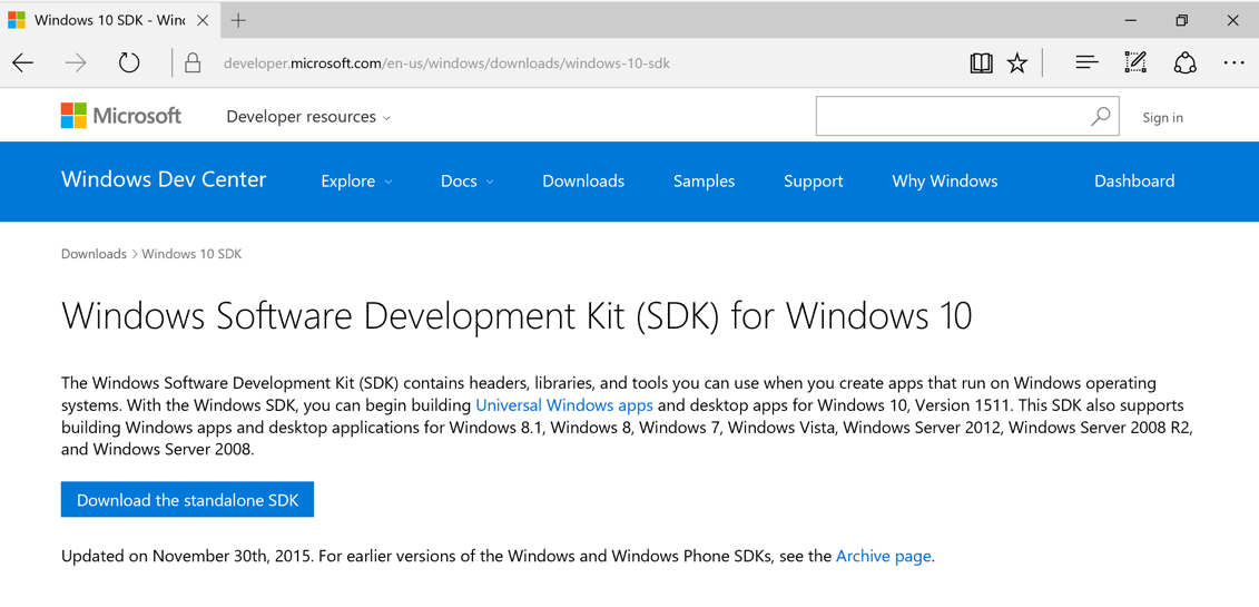 In the "As a standalone tool set" section, click "install the Windows SDK", as shown below: