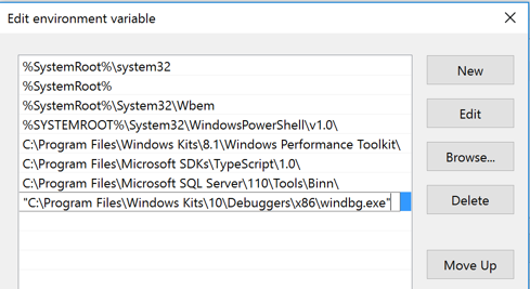at the bottom left of the sceen, click twice in the Cortana search bar and type windbg.