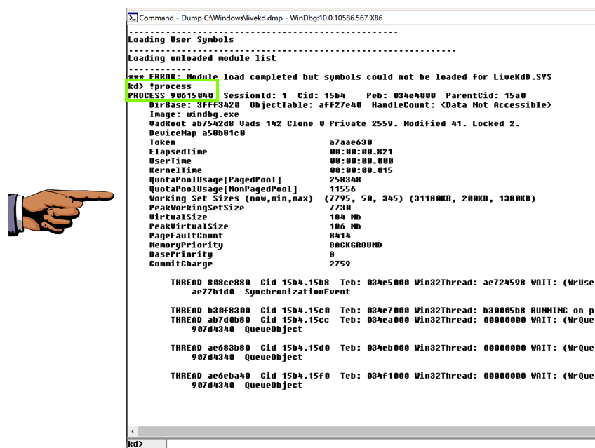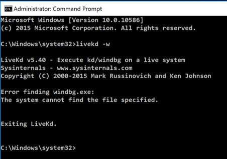 Livekd asks "Enter the folder to which symbols download". Press Enter to accept the default option.
