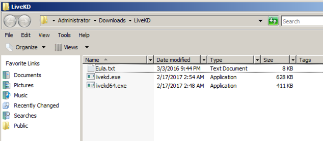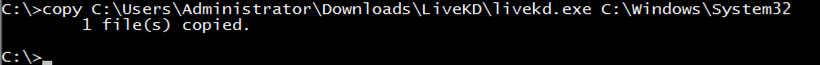 copy C:\Users\Administrator\Downloads\LiveKD\livekd.exe c:\Windows\System32