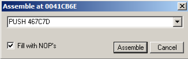An "Assemble at 0041CB6E" box appears, as shown below.出现“在0041CB6E组装”框,如下所示。