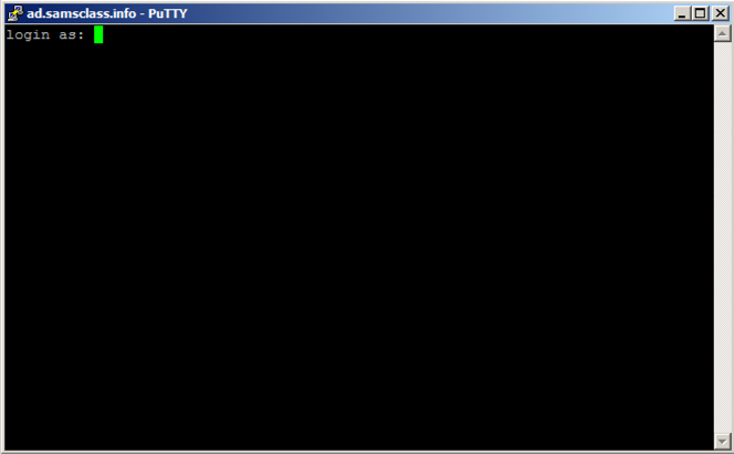 The black login window appears, with the message "ogin as: ", as shown below.出现黑色登录窗口,并显示消息“ogin as:”,如下所示。