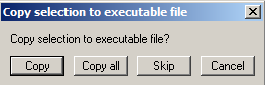 A "Copy selection to executable file" box pops up, as shown below.弹出一个“将选择复制到可执行文件”框,如下所示。 Click the " Copy all " button.点击“ 全部复制 ”按钮。