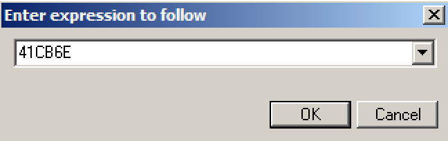 Ollydbg finds another line of code that uses this string, as shown below. Ollydbg发现使用此字符串的另一行代码,如下所示。 This instruction is at address 0041CB6E.该指令位于地址0041CB6E。