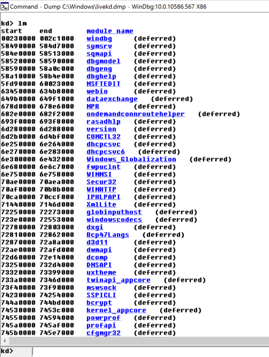 In WinDbg, execute this command: