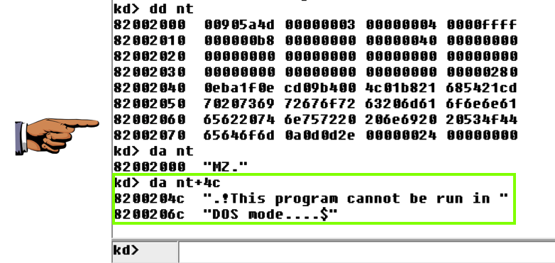 You see the first several bytes of Ntoskrnl.exe, as shown below.
