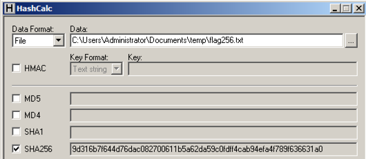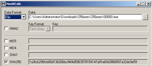 Patch all 256 files and run them.修补所有256个文件并运行它们。 Each file will give you one "Result" character.每个文件都会给你一个“结果”字符。 Gather all those characters into a file 256 bytes long.将所有这些字符收集到256个字节长的文件中。 Calculate the SHA256 hash of that file.计算该文件的SHA256散列。 It should match the value shown below.它应该与下面显示的值相匹配。