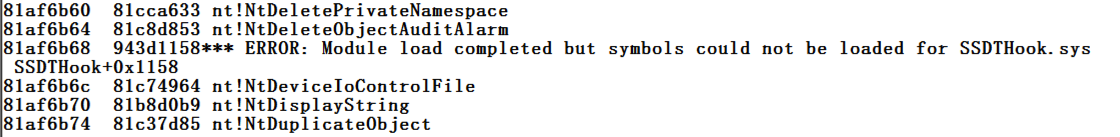 Launch livekd again, and examine the SSDT again.再次启动livekd,然后再次检查SSDT。 Now there is an obvious change at address 81af6b68