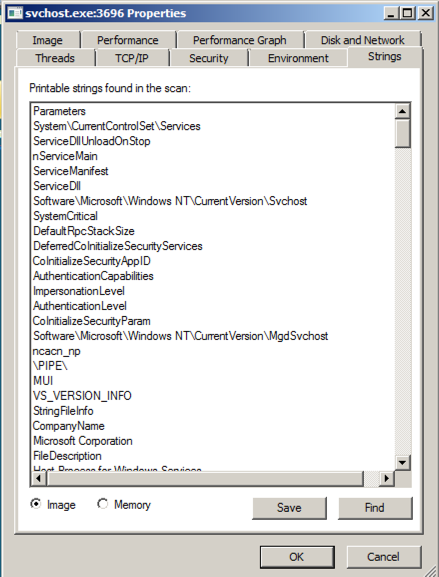 These are the strings on the disk, in the real svchost.exe file.这些是真正的svchost.exe文件中的磁盘上的字符串。