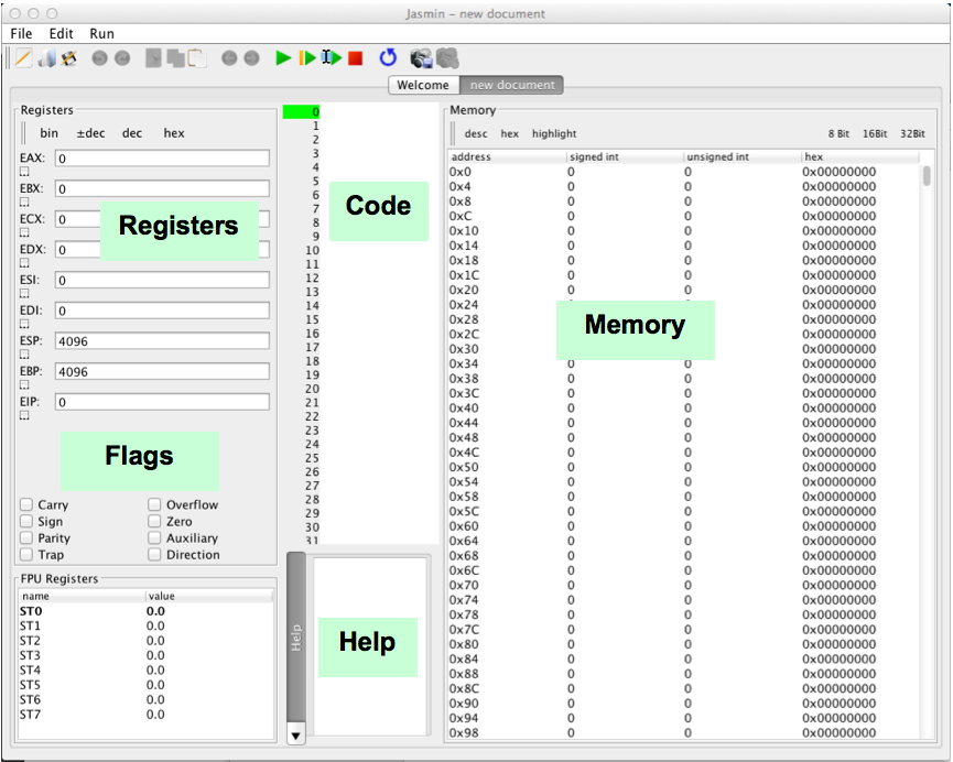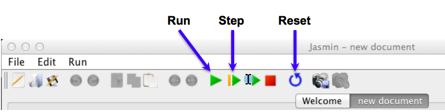 At the top of the Jasmin window, click the green Run button, as shown below.在Jasmin窗口的顶部,点击绿色的运行按钮,如下所示。