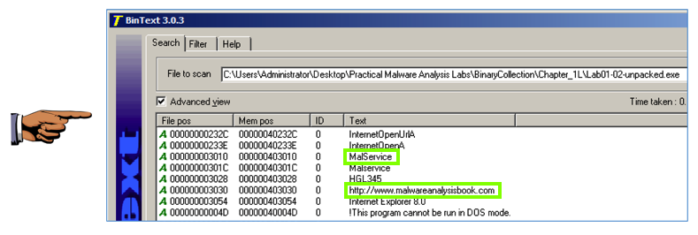 You should see MalService and http://www.malwareanalysisbook.com as shown below.