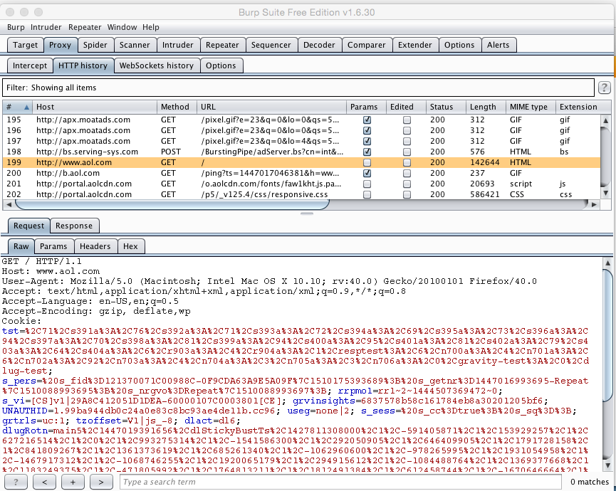 In Burp, click the Proxy tab. Click the "HTTP history" sub-tab.
