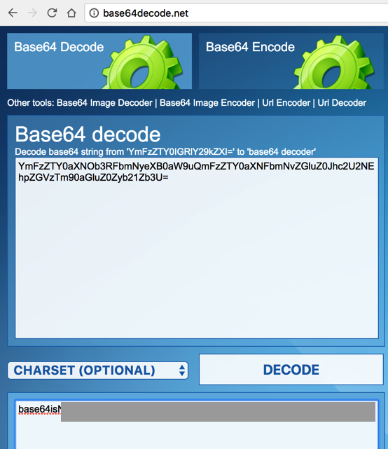 To use this form, enter the Base64-encoded data in the box, and then click the DECODE button. The result appears in the lower box, as shown below:
