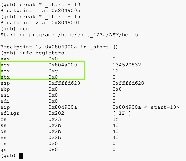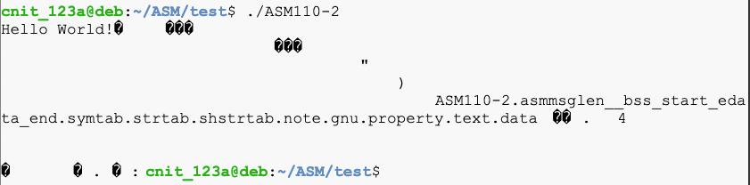 In the shell, execute these commands:The program prints out a lot of extra garbage after the desired "Hello, World!" message, as shown below.