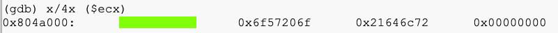 In gdb, execute this command:The flag is covered by a green rectangle in the image below.
