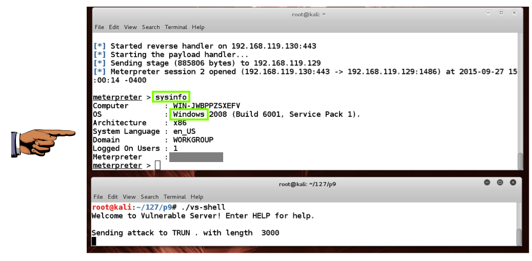 On your Kali Linux machine, in the Terminal window, type EXIT and press Enter to close your connection to Vulnerable Server.