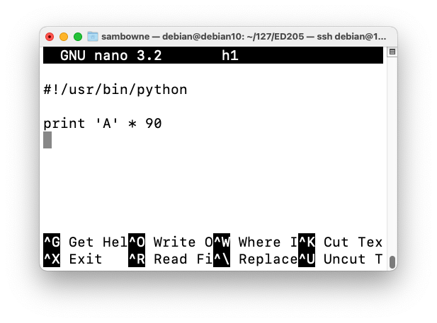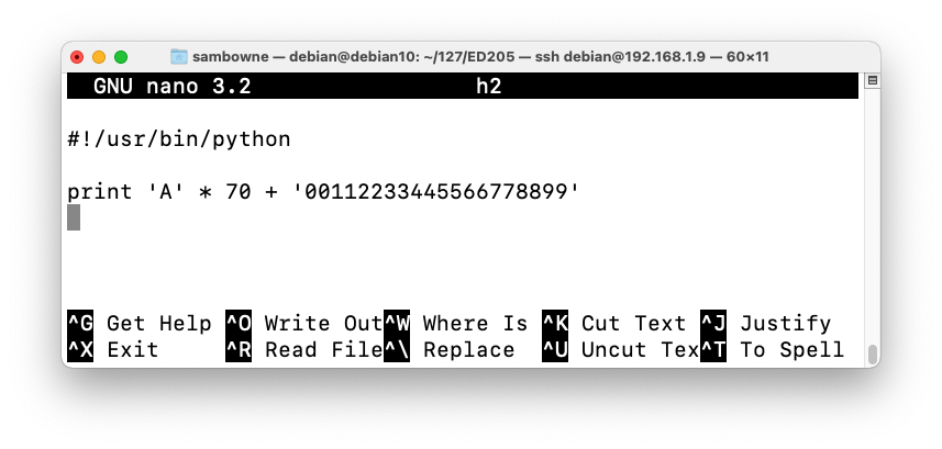 Modify the file to send only 70 'A' characters followed by 20 bytes in a nonrepeating pattern, as shown below.cp h1 h2 nano h2