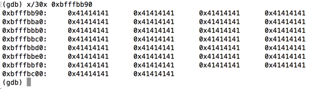 x/40x 0xbfffbba5 - 0x10