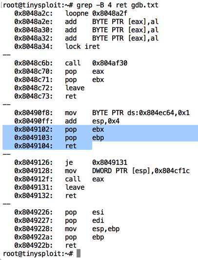 grep -B 4 ret gdb.txt