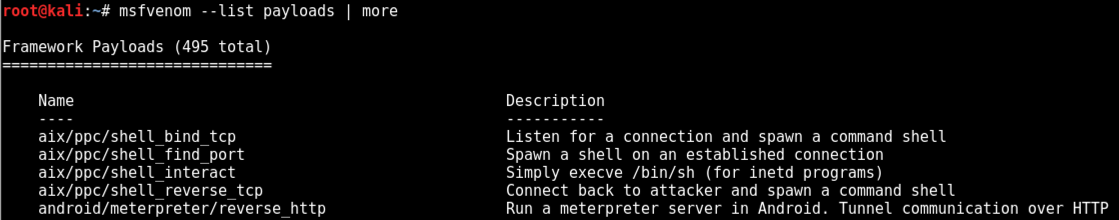 msfvenom --list payloads | more