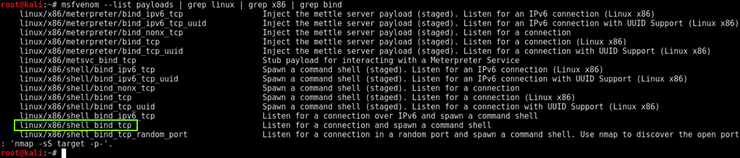 msfvenom --list payloads | grep linux | grep x86 | grep bind